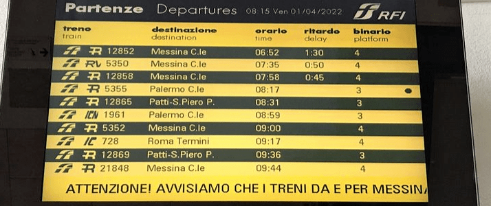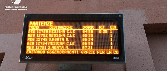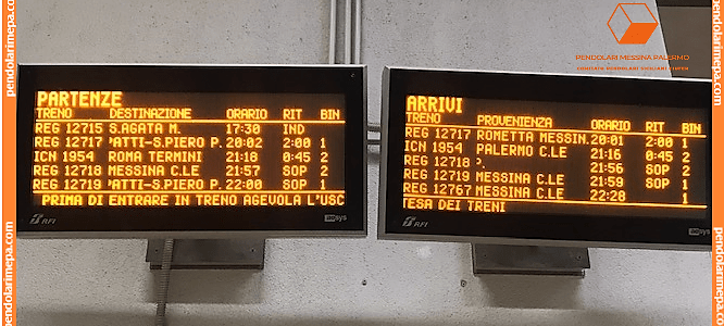 Spett.le Dipartimento Trasporto Ferroviario Regionale Servizio 2°,Il nostro Comitato Pendolari Messina Palermo Gruppo Comitato Pendolari Siciliani Ciufer, informa codesto Dipartimento Trasporto Ferroviario Servizio 2°, che, in questi giorni la circolazione ferroviaria nella relazione Messina C.le S.Agata M.llo , è stata fortemente perturbata. In particolare risultano essere stati spesso coinvolti i primi treni Pendolari R mattutini… Read More Ritardi treni R 12850/12852 S.Agata Messina